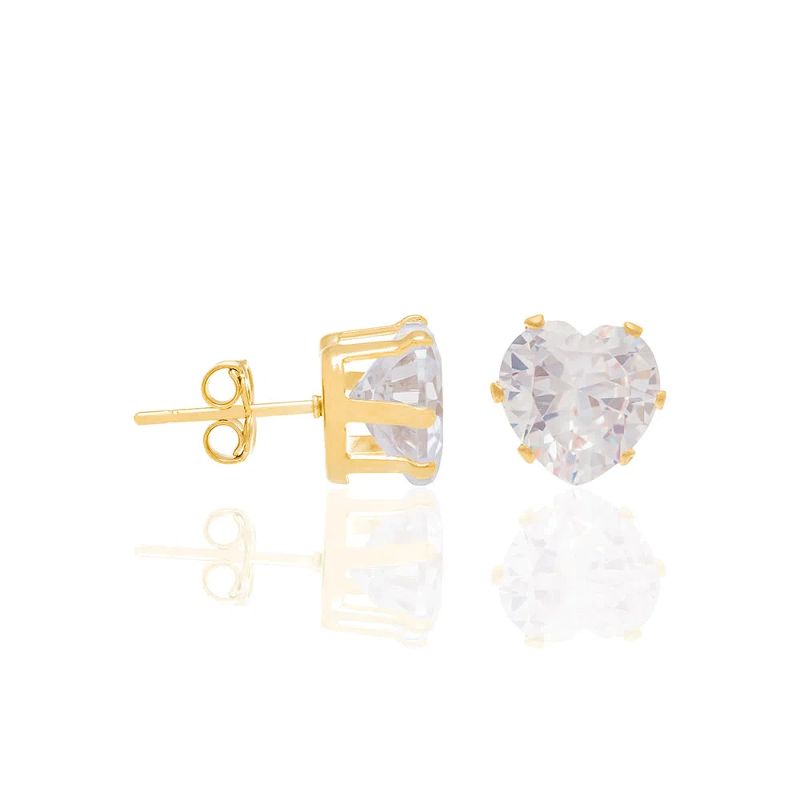 Semijoia Brinco coração zircônia cristal banhado em ouro 18k