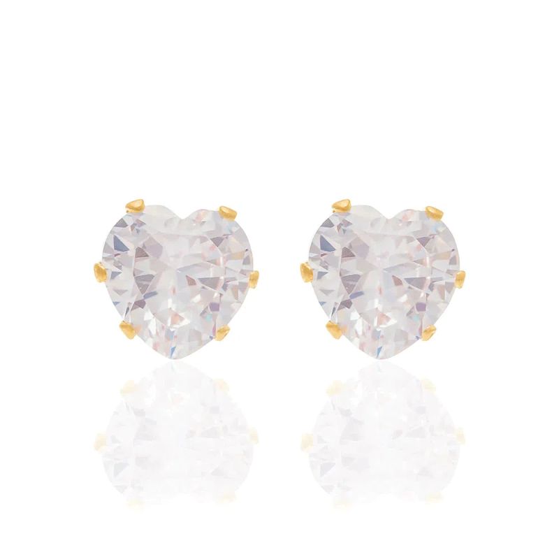 Semijoia Brinco coração zircônia cristal banhado em ouro 18k