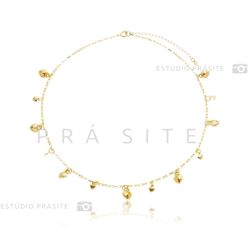 Semijóia finess colar chocker árvore com alongador 45+5cm em banho de ouro 18k